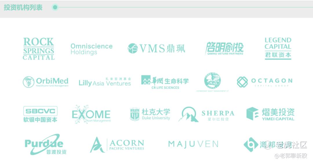 基石投或股东:高盛、GIC新加坡、启明、软银、Orbmid Fund、礼来基金、Rock Spring Capital (阵容竟然这么豪华)
