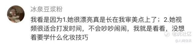 “我自己不化妆,但是喜欢看边化妆边唠嗑的视频下饭”。