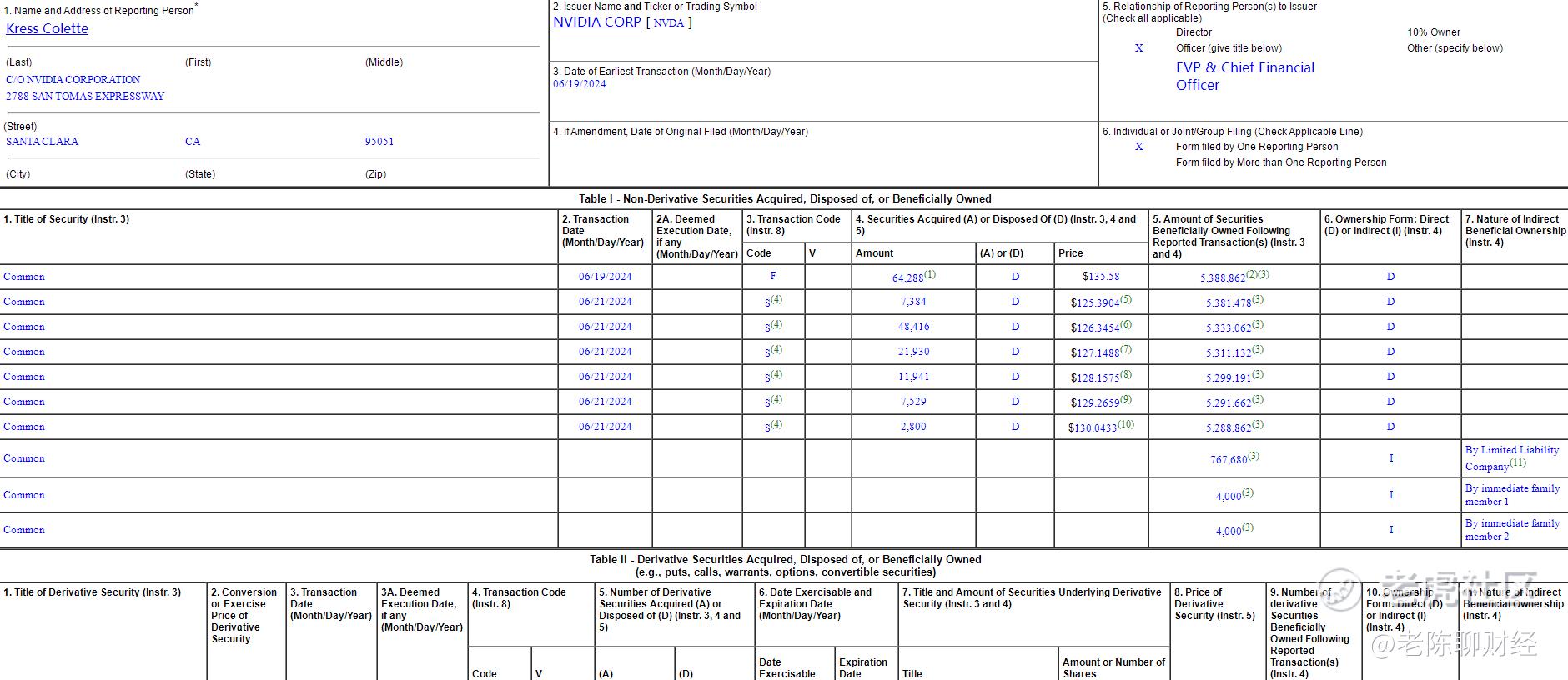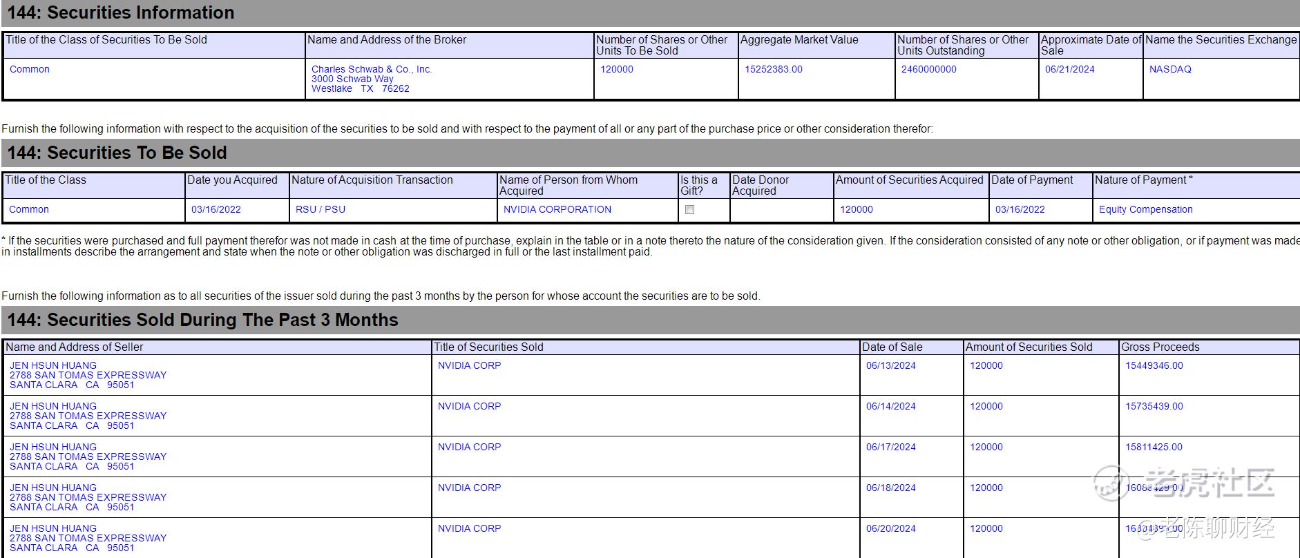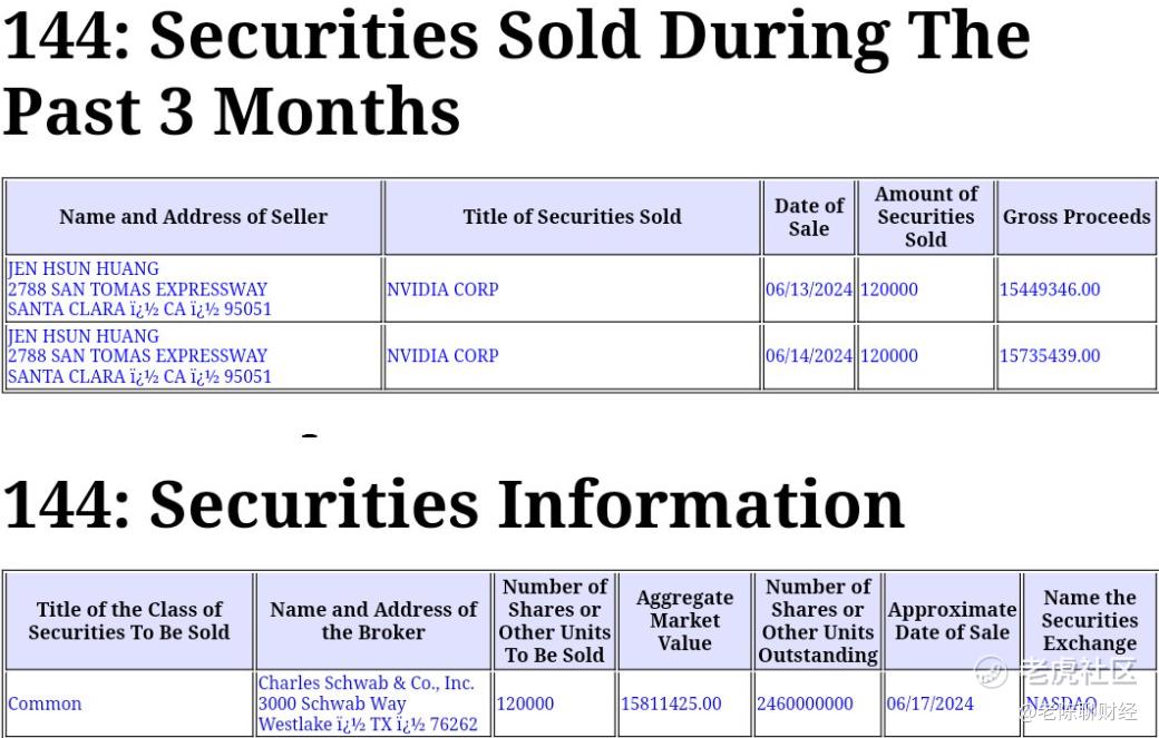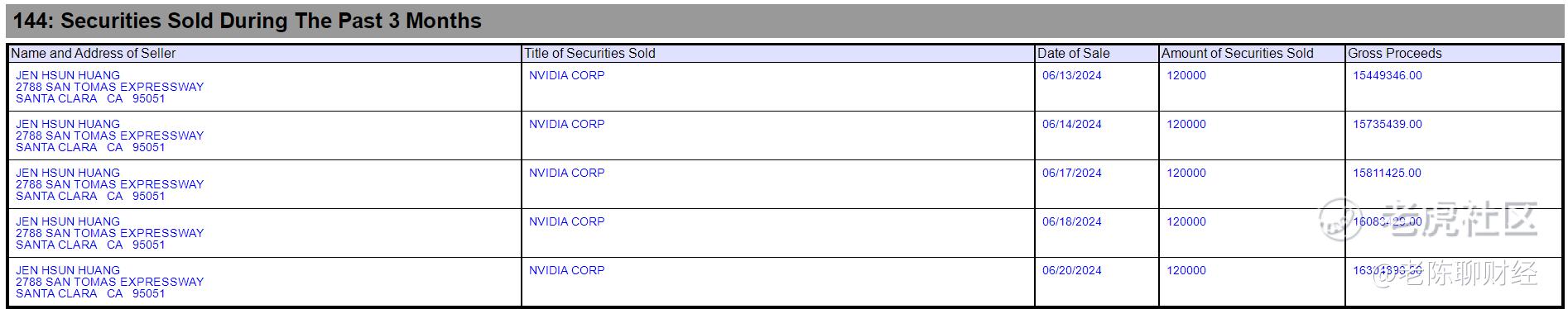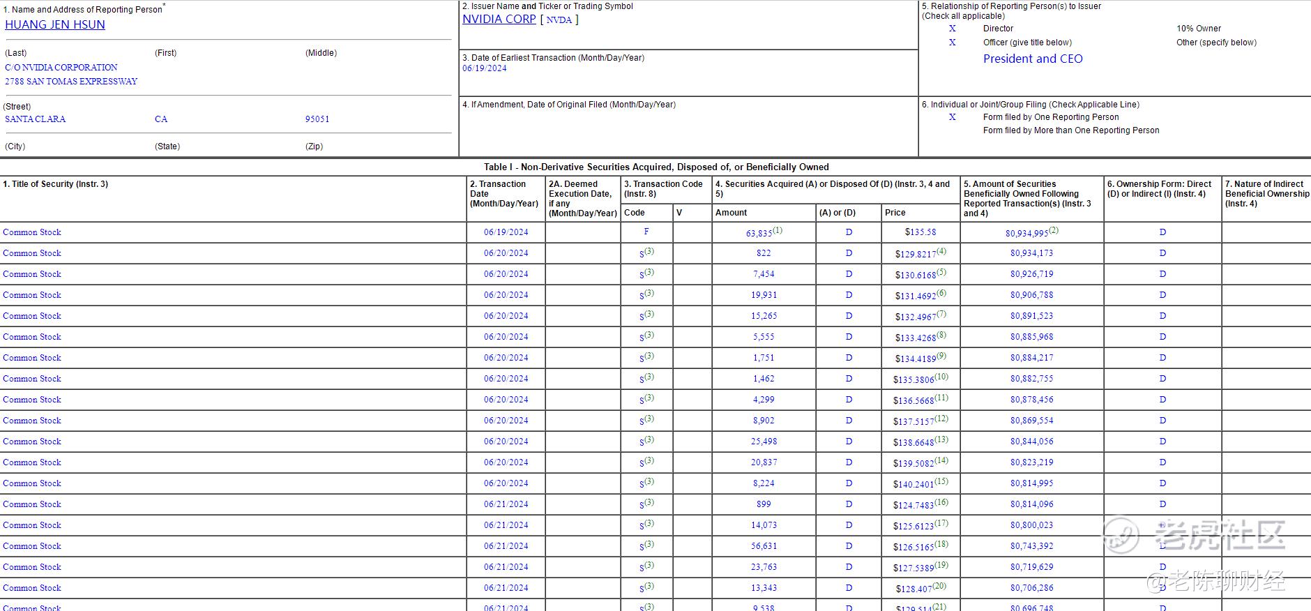 根据英伟达公司提交给美国证券交易委员会(SEC)的监管文件中显示,黄一直在忙于抛售股票。据英伟达的Form 4文件显示,仅在上周,黄就出售了价值超过9400万美金的股票。换而言之,在6月13日-21日期间出售了大概72万股的英伟达股票,净赚9464万美金。
