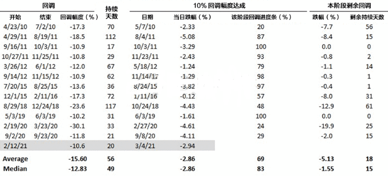 从2月12日高点开始,纳斯达克已经下跌3周有余,回撤幅度接近10%。个股方面,前期暴涨的中概在这一波下跌中回撤幅度非常大,如老虎证券、yala等弹性较大的股票已经回撤1/3。