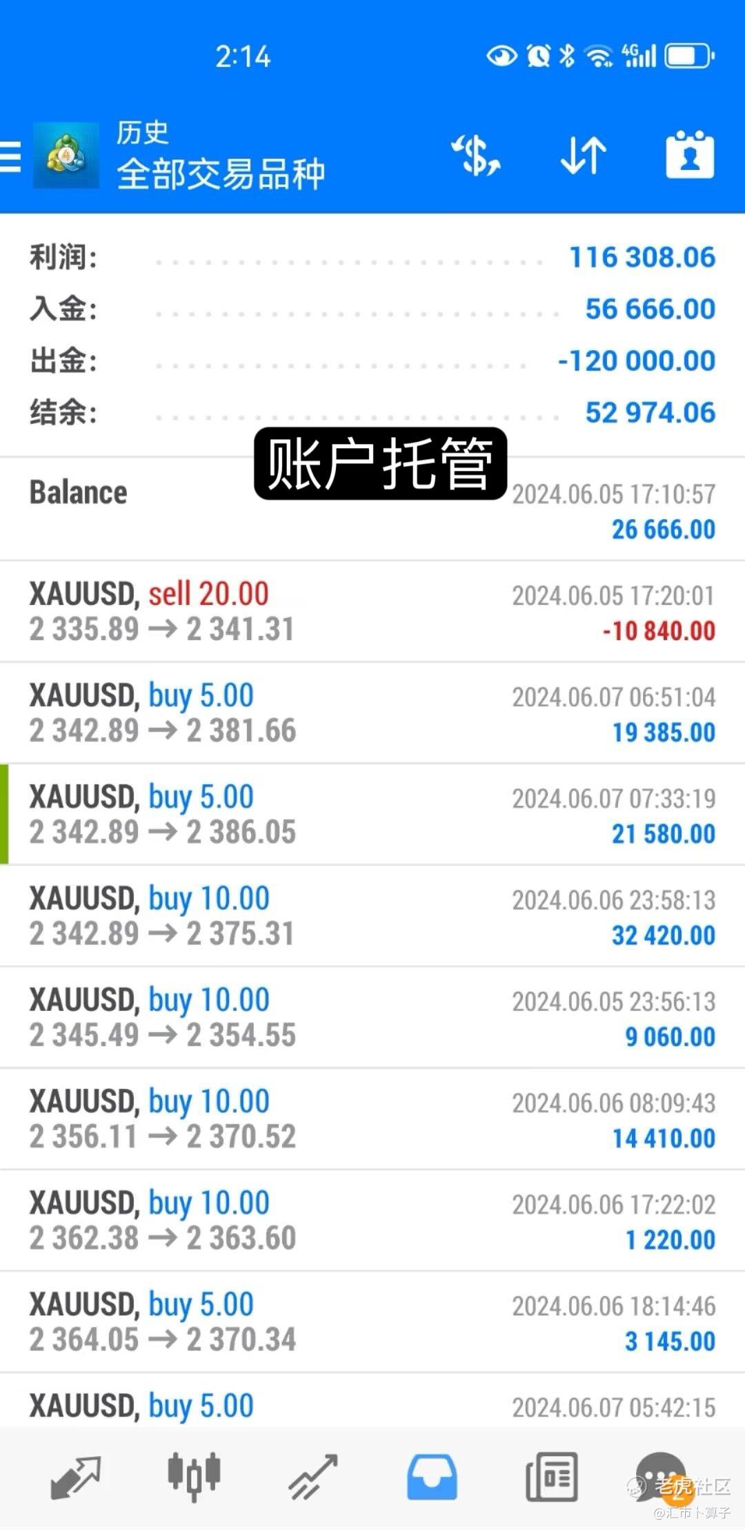 账户托管,两个半月的时间账户盈利11万美元,盈利已出!