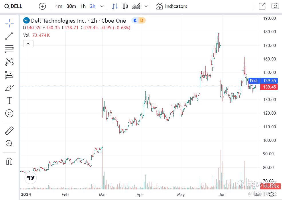 截止发稿时,周四戴尔股票上涨0.86%至139.43美金,2024迄今为止股票上涨超过80%。