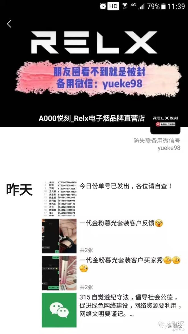 近日,微信安全中心发布打击个人帐号违禁品信息及欺诈行为公告后,“yueke67”立刻将朋友圈设置为三天可见,一些比较直接的电子烟信息发布后即遭折叠,效果可谓立竿见影。