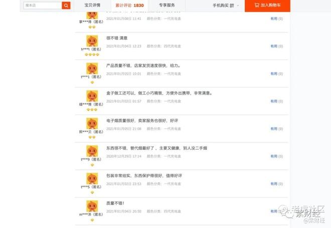悦刻上市前夕,紫财经就注意到淘宝上不少电子烟保护套、充电盒等配件下面都有一些奇怪的评价: