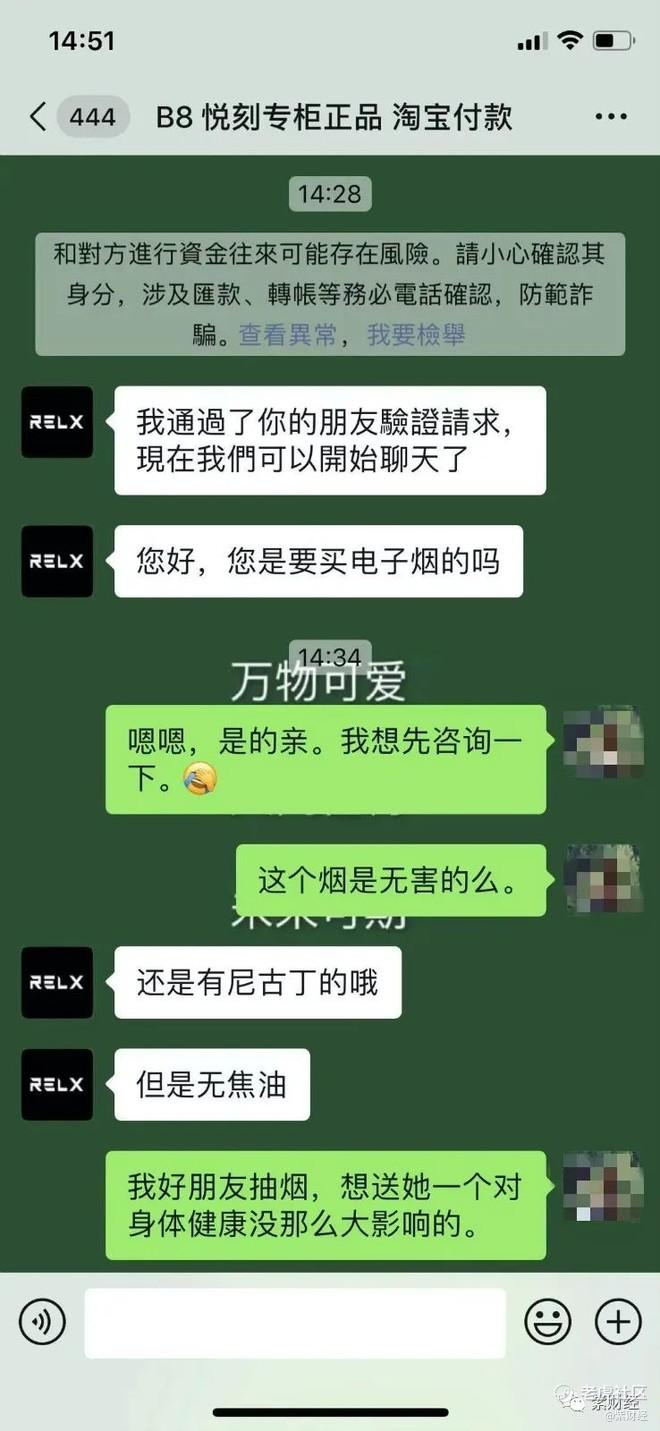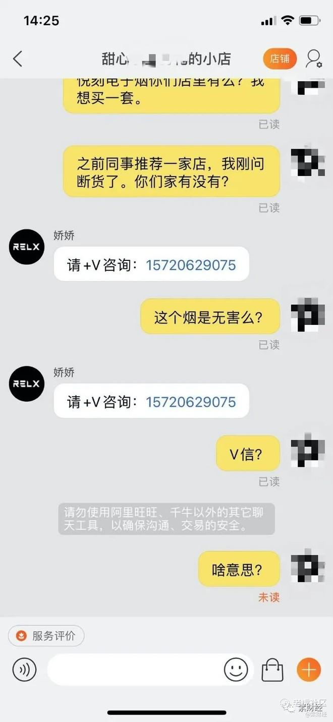 一位从业人士透露,打着卖配件的名义在几大电商平台销售电子烟,这是业界公开的秘密,且销量比我们想象的惊人得多。阿里、拼多多与悦刻对此很难说不知情,一个几块、几十块的商品频繁被改成几倍、几十块的价格进行交易,聊天记录经常出现某些高频词,一个小专卖店月销几十万或更高,许多订单由品牌方直接发货等,都是异常信号,而卖家经常以“V”代替“微信”说明监控一直都有。