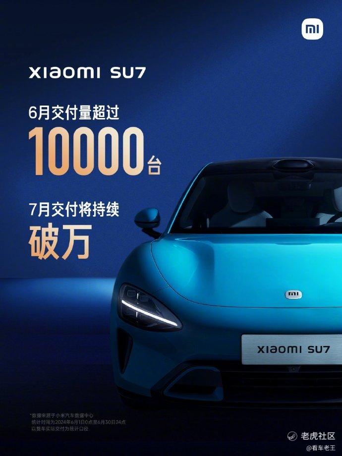 雷军今天宣布了小米酥7六月份交付破万,从SU7上市至今累计交付应该还不到3万辆吧,现在只剩下半年时间,距离小米的年度交付目标12万辆还有不少的差距,今年年底到底能否达成目标呢?