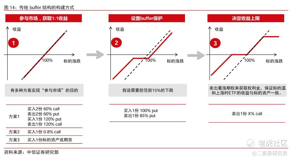 中信证券分析了占比最大的“传统Buffer“类ETF,其构建分为三层: