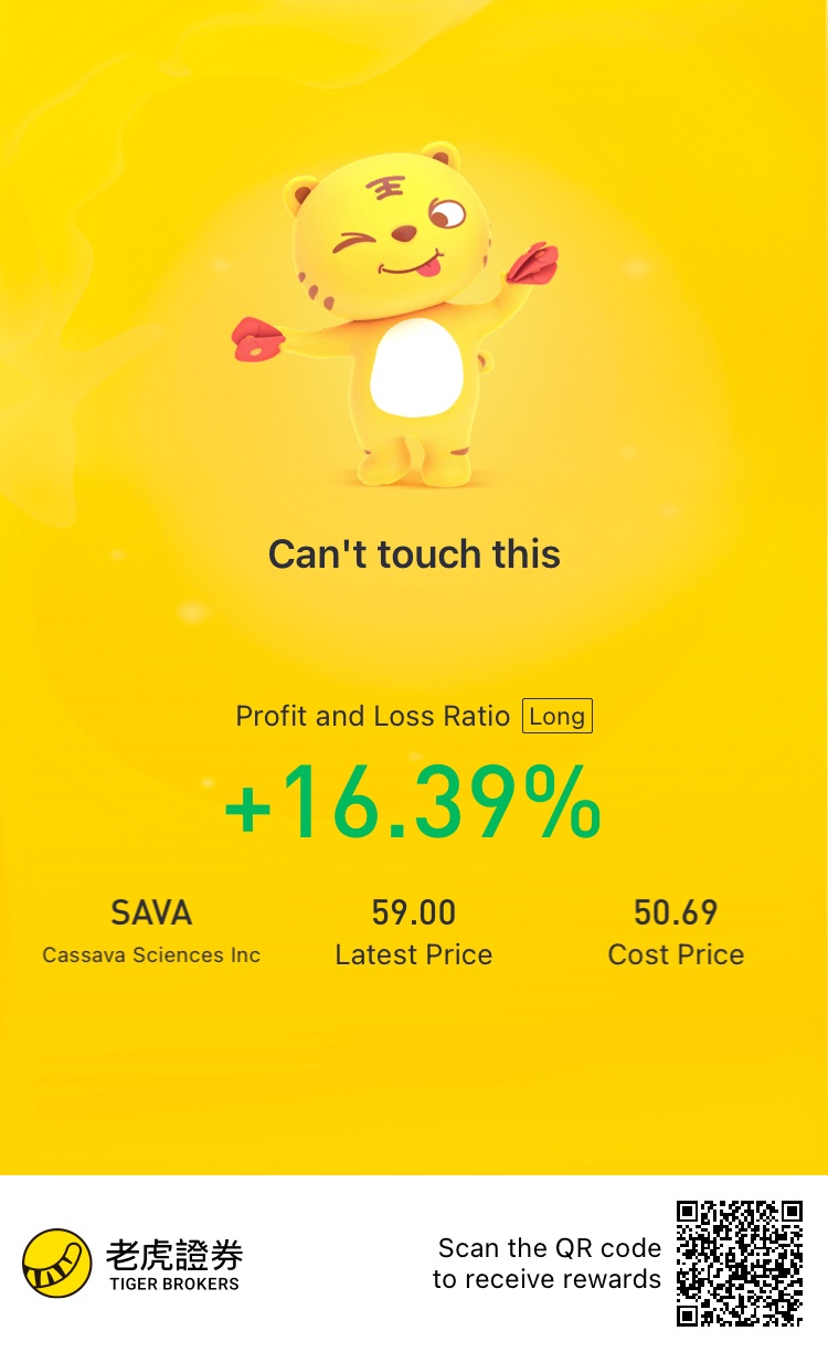 $Cassava Sciences Inc(SAVA)$Buying moreand HOLDING!!! Might need their AD treatment in the future when I’m an old fart [害羞]
