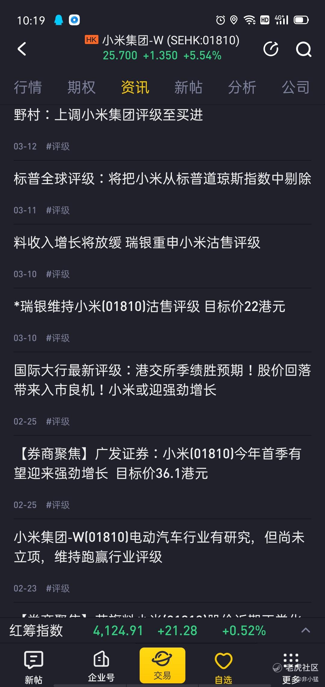 唱空看多是华尔街奸商的一贯玩法,我看到瑞银UBS下调小米至22港币,就知道丫要进货了,跟风买进2000股[开心] [财迷]