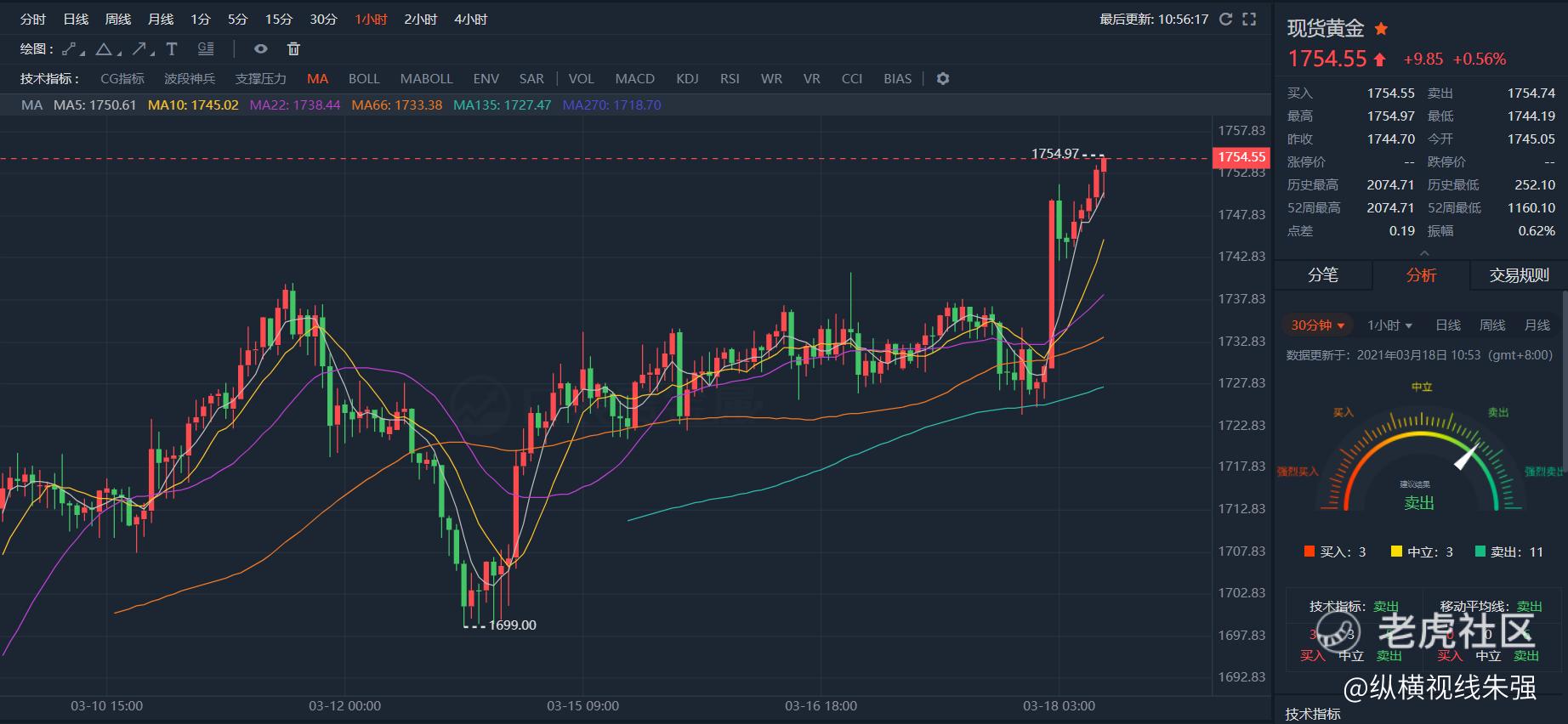 从技术形态上来看,本周金价有望继续回升至周线图MA66(1767美元)至MA10(1786美元)区间!本月金价仍有望挑战1800美元整数关口!