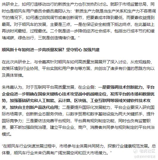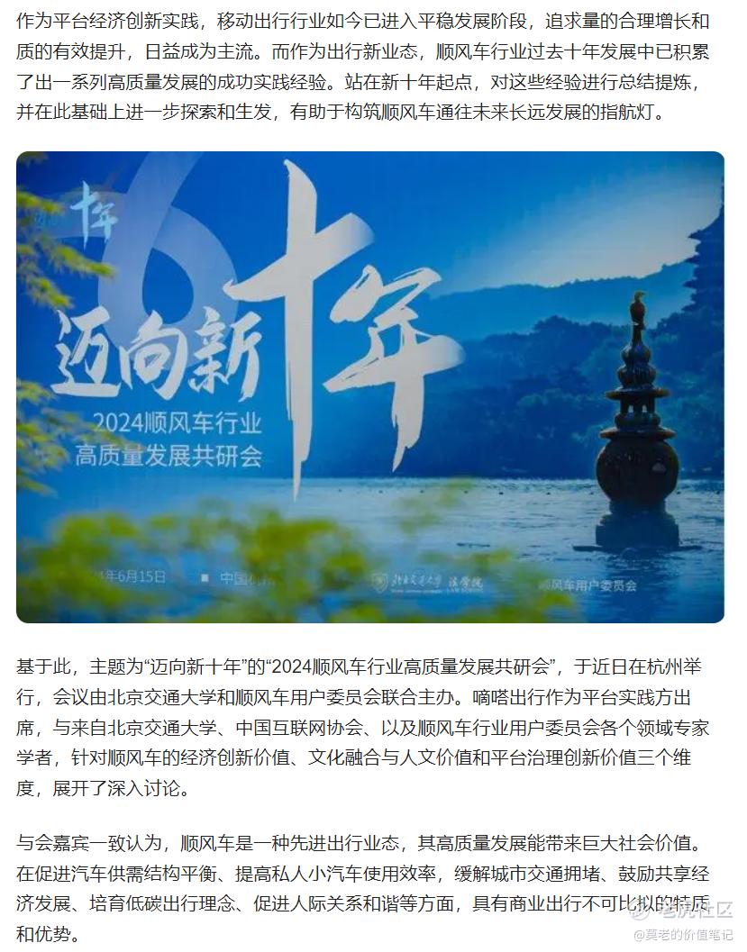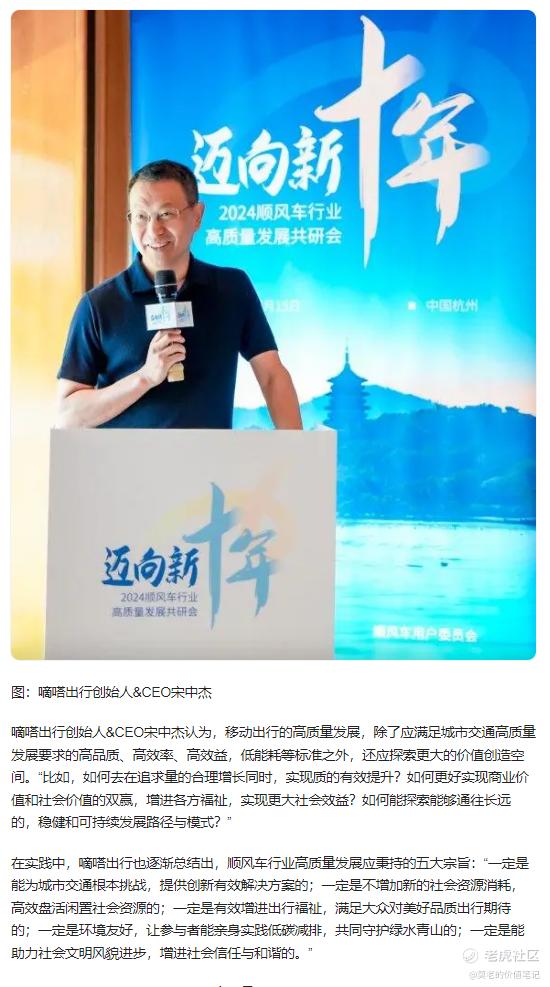 继续坚守初心,放眼长远,加强协作,做好基建,共塑可持续多赢的顺风车生态;期待平台与广大用户共同努力,让顺风车独有人文生态不断生长与升华,让更多车主愿意并乐于分享空座,让更多用户从互助和利他中收获满足,让顺风车业态在增进各方福祉过程中,通往更加长远的未来。$嘀嗒出行(02559)$