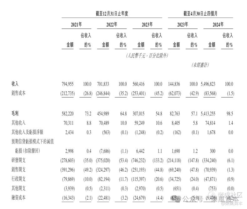 根据招股书,直至目前,百利天恒核心收入都来自于非创新药产品销售,依靠传统的仿制药和中成药来维持营收,然而这一收入出现了逐年下降的态势。2021-2023年,百利天恒的药品销售收入分别为7.95亿元人民币,7.02亿元人民币,5.06亿元人民币;同时2024年前四个月销售额为1.65亿元人民币,可见百利天恒并没有有效的措施来遏制这股下滑趋势。