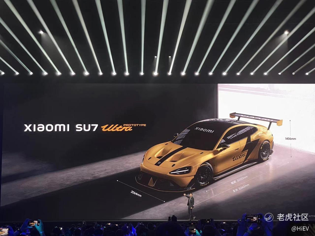在万众期待的One More Thing环节,雷军带来的惊喜是小米SU7 Ultra原型车。