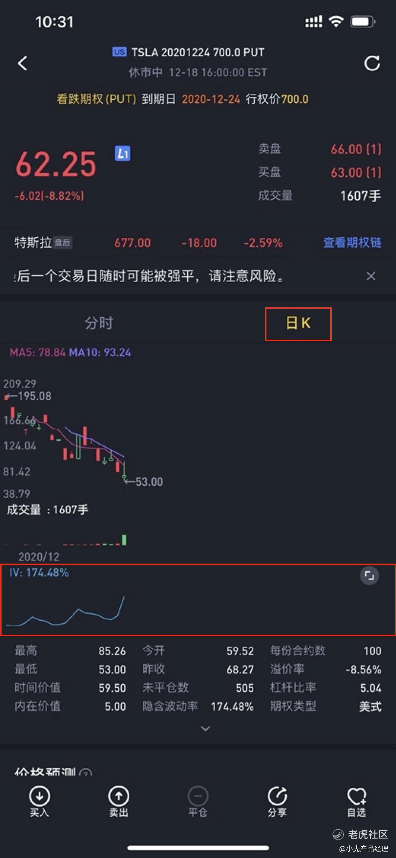 【新增】期权详情页新增日K历史IV