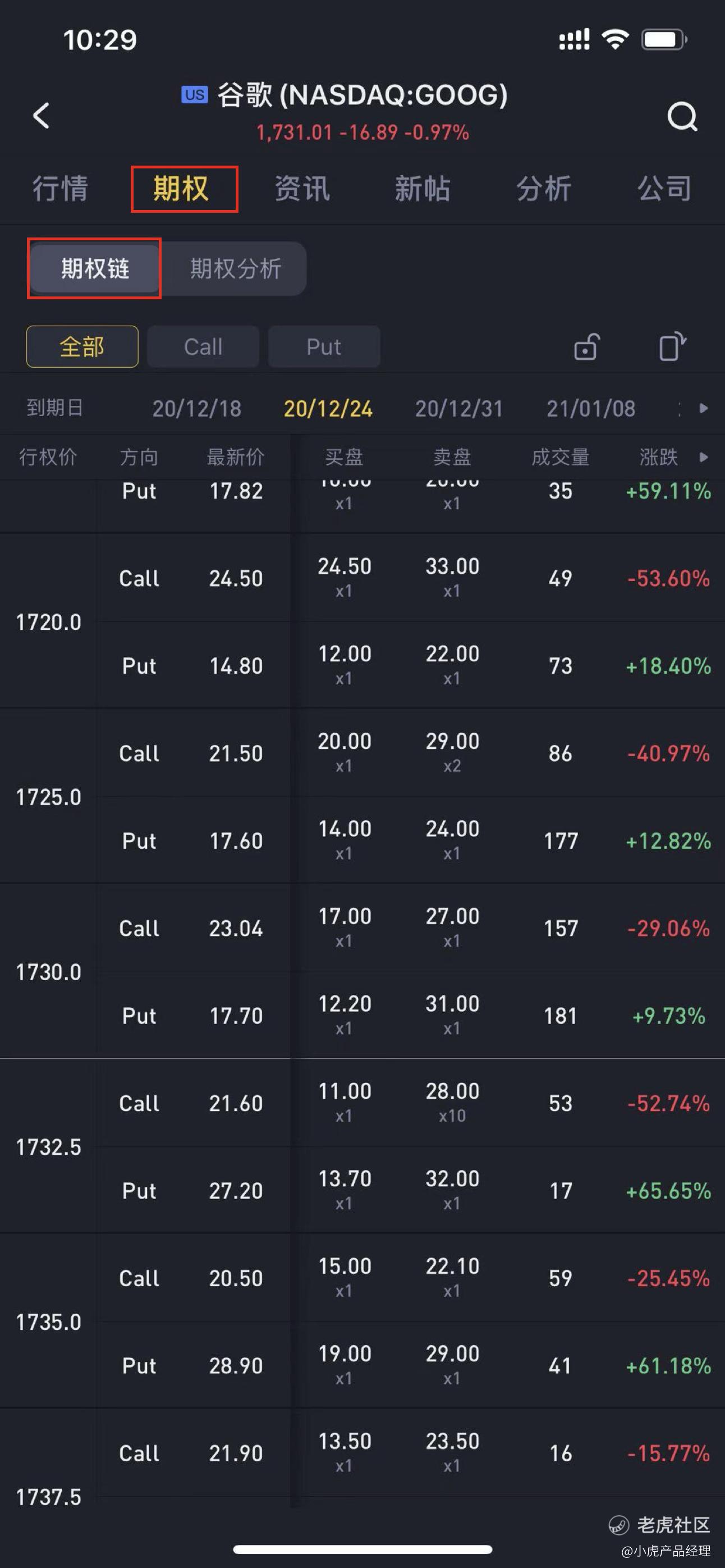 -功能入口:个股页-期权-期权链