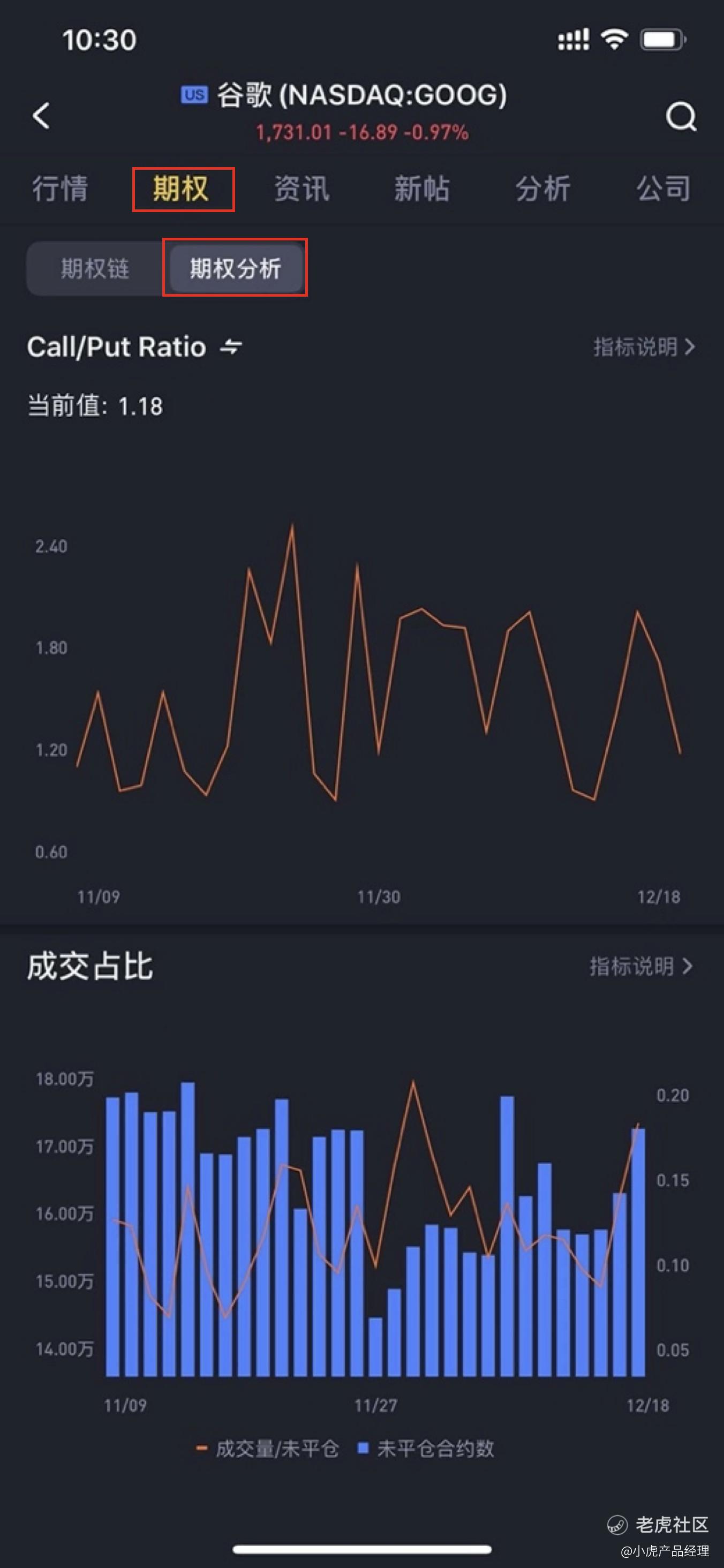 -现期权页面的“期权分析”中会新增展示Call/put ratio以及成交量分布的情况,以提供更好的参考。