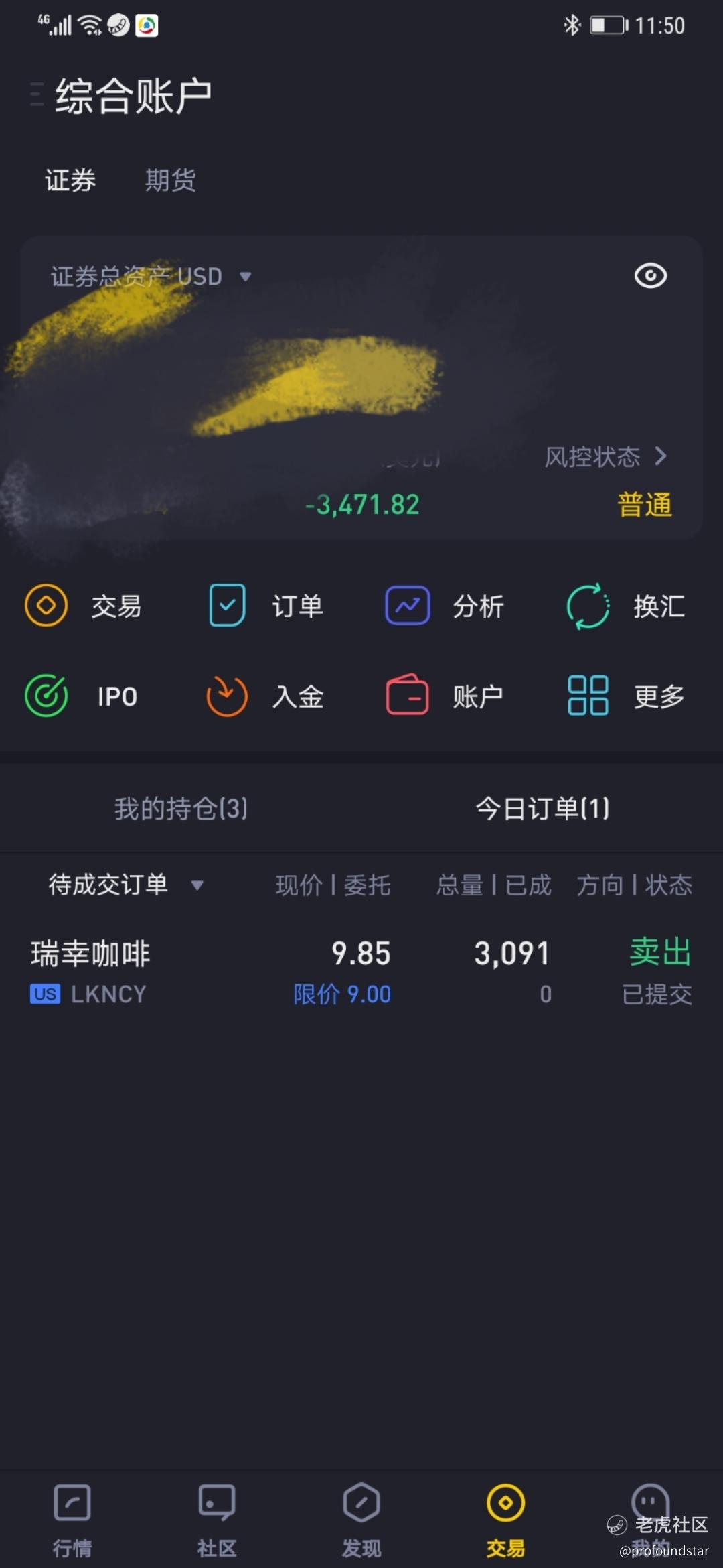 我疯了啊!9.5全仓卖,9.52成交了999股,然后剩下3091股不动了!结果强行最低价卖出!老虎做的真垃圾!