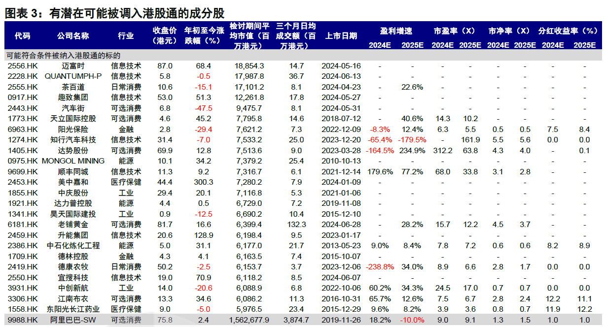 预计有25家公司可能被纳入港股通,这些公司包括但不限于: