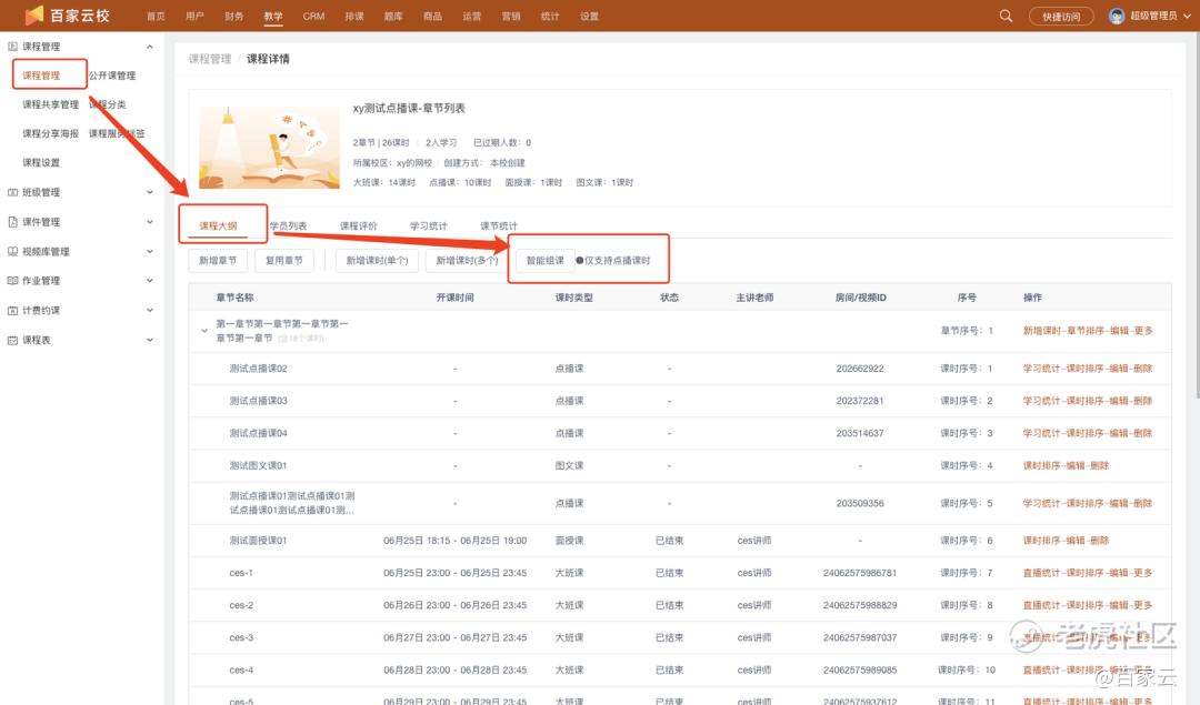 在传统的教学模式中,教务人员往往需要花费大量时间和精力进行课程编排,不仅效率较低,还容易出现人为错误。而百家云校此次推出的「教务智能组课功能」,利用智能算法能够实现课程标签和视频库标签的精准匹配,自动完成课程内容的组合与编排。