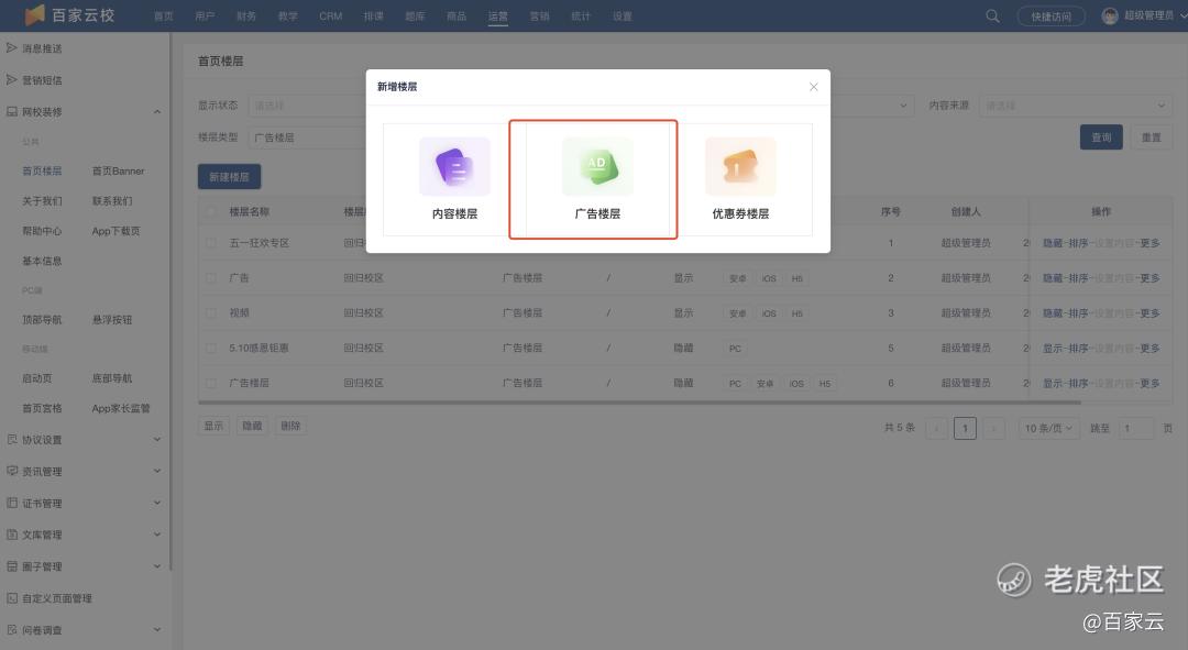 新增的广告楼层功能支持图片、视频、文本等多种形式的内容展示,为网校提供了更加个性化和灵活的广告推广空间。这些广告内容可以根据不同的推广需求和目标受众进行定制和优化,从而提高广告的点击率和转化率。