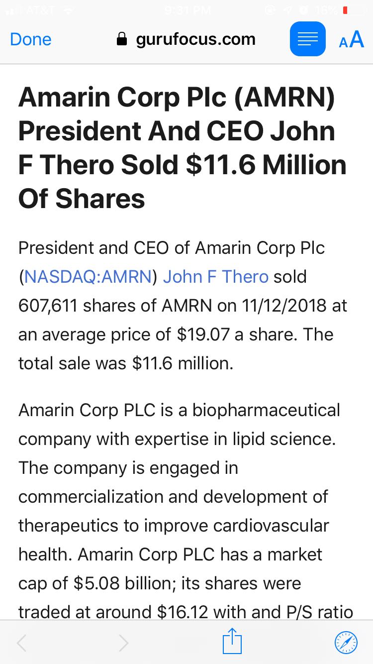 $阿玛琳(AMRN)$ CEO上电视力挺自己,然后反手就把仓空了。