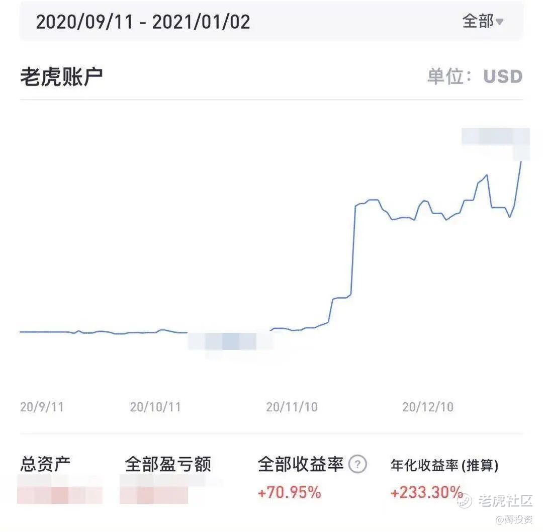 2020年5月正式开通A股账户,2020年9月11日正式开通老虎账户,A股账户的收益率已达105%,港美股的老虎账户收益率已达70%。2020年11月,开始真正意义上的投资基金,两个月的时间,基金总体收益率达19%。