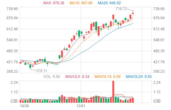 特斯拉今日盘前涨2.18%,均线呈现多头趋势排列。结合1月1日的Model Y降价热潮,预计还能再涨一段时间,750应该不是问题。德意志银行将其目标价从500上调至705美元。