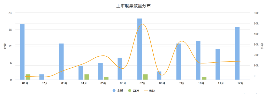 1月、7月、12月新股最多,但1月的收益却并不好。7月、9月由于思摩尔、农夫的优异表现,收益上有了两次爆发,其余月份相对稳定,收益整体呈现一个“山”型。与大盘走势有一定相关性,却又不完全同步。