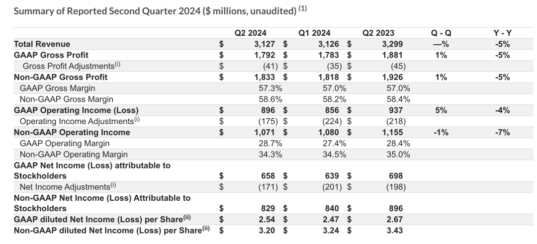 恩智浦半导体(NXP )公布了其2024年第二季度财务业绩,面临全球经济的不确定性和行业的周期性挑战,第二季度,恩智浦总收入为31.3亿美元,同比下降5%。