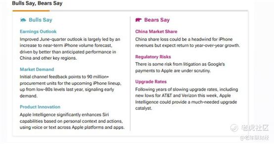 根据TipRanks专家的看涨/看跌观点,乐观者认为苹果改善6月季度前景是有近期Iphone增加销量预测推动的。然而,看空者指出,中国市场份额的下降可能会对Iphone的收入产生不利影响。还指出了监管方面的阻力,对谷歌向苹果付款的审查构成了潜在的诉讼威胁。