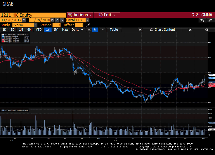1211, BYD CO, rise 6.36%. New Model stoke enthusiasm at Guangzhou Auto Show.