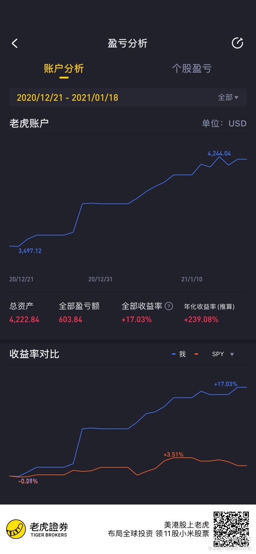 20年12月底开了一个小号,冲了3500刀,看看要多久才能变成10000刀,目前赚了700多刀,拭目以待$拼多多(PDD)$$库客音乐(KUKE)$$特斯拉(TSLA)$$阿里巴巴(BABA)$$苹果(AAPL)$