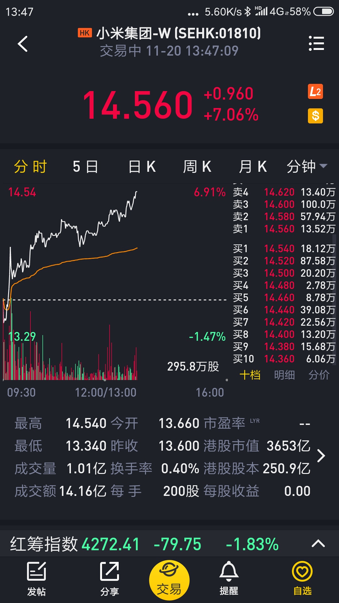 $小米集团-W(01810)$如果今天能到14.56我就签自己20耳光!😁