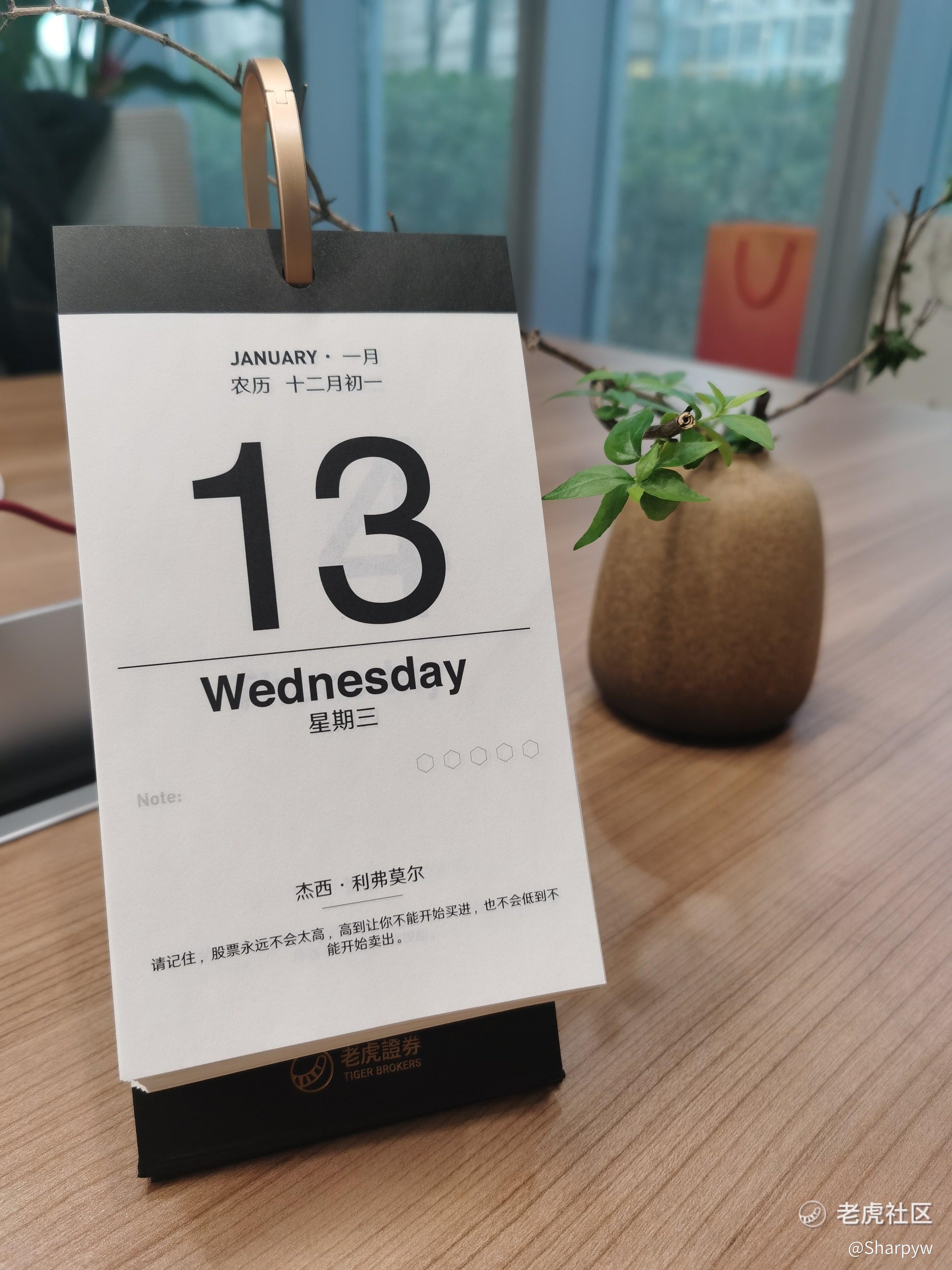 感谢老虎证券送来的2021年的日历,非常好看,感谢,上面每天一段投资名句,非常不错.