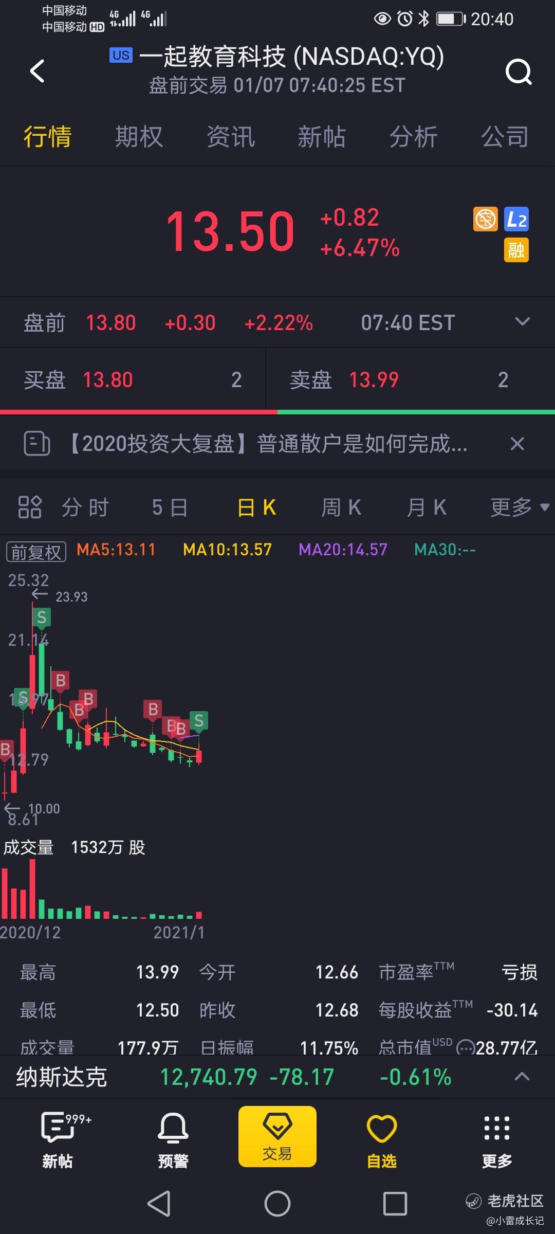 {"i18n":{"language":"zh_CN"},"detailType":1,"isChannel":false,"data":{"magic":2,"id":336391782,"tweetId":"336391782","gmtCreate":1610023393746,"gmtModify":1703742100184,"author":{"id":3553123619980458,"idStr":"3553123619980458","authorId":3553123619980458,"authorIdStr":"3553123619980458","name":"小雷成长记","avatar":"https://static.tigerbbs.com/3ec0de54683d0b179b1ea0563a7fb11f","vip":1,"userType":1,"introduction":"","boolIsFan":false,"boolIsHead":false,"crmLevel":1,"crmLevelSwitch":0,"individualDisplayBadges":[],"fanSize":363,"starInvestorFlag":false},"themes":[],"images":[{"img":"https://static.tigerbbs.com/8188c89d69bfdefcdffe06dbfa5ecb43","width":"1080","height":"2400"}],"coverImages":[{"img":"https://static.tigerbbs.com/8188c89d69bfdefcdffe06dbfa5ecb43","width":"1080","height":"2400"}],"extraTitle":"","html":"<html><head></head><body><p><a href=\"https://laohu8.com/S/YQ\">$一起教育科技(YQ)$</a></p><p>加了六次仓,昨晚看着不动,想先出去套一波再入,万万没想到,卖在最低点,要不今晚回本了<span>[喷血] </span><span>[喷血] </span><span>[喷血] </span>等着,我还会再来的<span>[捂脸] </span></p><p><img src=\"https://static.tigerbbs.com/8188c89d69bfdefcdffe06dbfa5ecb43\" tg-width=\"1080\" tg-height=\"2400\"></p></body></html>","htmlText":"<html><head></head><body><p><a href=\"https://laohu8.com/S/YQ\">$一起教育科技(YQ)$</a></p><p>加了六次仓,昨晚看着不动,想先出去套一波再入,万万没想到,卖在最低点,要不今晚回本了<span>[喷血] </span><span>[喷血] </span><span>[喷血] </span>等着,我还会再来的<span>[捂脸] </span></p><p><img src=\"https://static.tigerbbs.com/8188c89d69bfdefcdffe06dbfa5ecb43\" tg-width=\"1080\" tg-height=\"2400\"></p></body></html>","text":"$一起教育科技(YQ)$ 加了六次仓,昨晚看着不动,想先出去套一波再入,万万没想到,卖在最低点,要不今晚回本了[喷血] [喷血] [喷血] 等着,我还会再来的[捂脸]","highlighted":2,"essential":1,"paper":1,"likeSize":38,"commentSize":23,"repostSize":5,"favoriteSize":0,"link":"https://laohu8.com/post/336391782","repostId":0,"isVote":1,"tweetType":1,"viewCount":5948,"commentLimit":10,"likeStatus":false,"favoriteStatus":false,"reportStatus":false,"symbols":["YQ"],"verified":2,"subType":0,"readableState":1,"langContent":"CN","currentLanguage":"CN","warmUpFlag":false,"orderFlag":false,"shareable":true,"causeOfNotShareable":"","featuresForAnalytics":[],"commentAndTweetFlag":false,"andRepostAutoSelectedFlag":false,"upFlag":false,"length":138,"xxTargetLangEnum":"ZH_CN"},"commentList":[{"id":3302286,"commentId":"3302286","gmtCreate":1610191468754,"gmtModify":1610195935136,"authorId":3559546852929880,"author":{"id":3559546852929880,"idStr":"3559546852929880","authorId":3559546852929880,"name":"钥匙_","avatar":"https://static.tigerbbs.com/83aec33f8306daa8b41faf9102c1c37a","vip":1,"crmLevel":1,"crmLevelSwitch":0,"individualDisplayBadges":[]},"repliedAuthorId":0,"objectId":336391782,"objectIdStr":"336391782","type":1,"supId":0,"supIdStr":"0","prevId":0,"prevIdStr":"0","content":"公司很烂根本不盈利","text":"公司很烂根本不盈利","html":"公司很烂根本不盈利","likeSize":0,"commentSize":3,"subComments":[{"id":3304083,"commentId":"3304083","gmtCreate":1610242660518,"gmtModify":1610242660518,"authorId":3553123619980458,"author":{"id":3553123619980458,"idStr":"3553123619980458","authorId":3553123619980458,"name":"小雷成长记","avatar":"https://static.tigerbbs.com/3ec0de54683d0b179b1ea0563a7fb11f","vip":1,"crmLevel":1,"crmLevelSwitch":0,"individualDisplayBadges":[]},"repliedAuthorId":3559546852929880,"repliedAuthor":{"id":3559546852929880,"idStr":"3559546852929880","authorId":3559546852929880,"name":"钥匙_","avatar":"https://static.tigerbbs.com/83aec33f8306daa8b41faf9102c1c37a","vip":1,"crmLevel":1,"crmLevelSwitch":0,"individualDisplayBadges":[]},"objectId":336391782,"objectIdStr":"336391782","type":1,"supId":3302286,"supIdStr":"3302286","prevId":3303241,"prevIdStr":"3303241","content":"原来上这样啊 [笑哭]","text":"原来上这样啊 [笑哭]","html":"原来上这样啊 [笑哭]","disclaimerType":0},{"id":3303241,"commentId":"3303241","gmtCreate":1610207207722,"gmtModify":1610207207722,"authorId":3559546852929880,"author":{"id":3559546852929880,"idStr":"3559546852929880","authorId":3559546852929880,"name":"钥匙_","avatar":"https://static.tigerbbs.com/83aec33f8306daa8b41faf9102c1c37a","vip":1,"crmLevel":1,"crmLevelSwitch":0,"individualDisplayBadges":[]},"repliedAuthorId":3553123619980458,"repliedAuthor":{"id":3553123619980458,"idStr":"3553123619980458","authorId":3553123619980458,"name":"小雷成长记","avatar":"https://static.tigerbbs.com/3ec0de54683d0b179b1ea0563a7fb11f","vip":1,"crmLevel":1,"crmLevelSwitch":0,"individualDisplayBadges":[]},"objectId":336391782,"objectIdStr":"336391782","type":1,"supId":3302286,"supIdStr":"3302286","prevId":3302699,"prevIdStr":"3302699","content":"我在这里上班我能不知道吗[呆住] 我是一线直接接触家长的 ","text":"我在这里上班我能不知道吗[呆住] 我是一线直接接触家长的 ","html":"我在这里上班我能不知道吗[呆住] 我是一线直接接触家长的 ","disclaimerType":0},{"id":3302699,"commentId":"3302699","gmtCreate":1610197957976,"gmtModify":1610197957976,"authorId":3553123619980458,"author":{"id":3553123619980458,"idStr":"3553123619980458","authorId":3553123619980458,"name":"小雷成长记","avatar":"https://static.tigerbbs.com/3ec0de54683d0b179b1ea0563a7fb11f","vip":1,"crmLevel":1,"crmLevelSwitch":0,"individualDisplayBadges":[]},"repliedAuthorId":0,"objectId":336391782,"objectIdStr":"336391782","type":1,"supId":3302286,"supIdStr":"3302286","prevId":0,"prevIdStr":"0","content":"看雷军那么看好 [捂脸]","text":"看雷军那么看好 [捂脸]","html":"看雷军那么看好 [捂脸]","disclaimerType":0}],"verified":10,"allocateAmount":0,"commentType":"valid","coins":0,"score":0,"disclaimerT