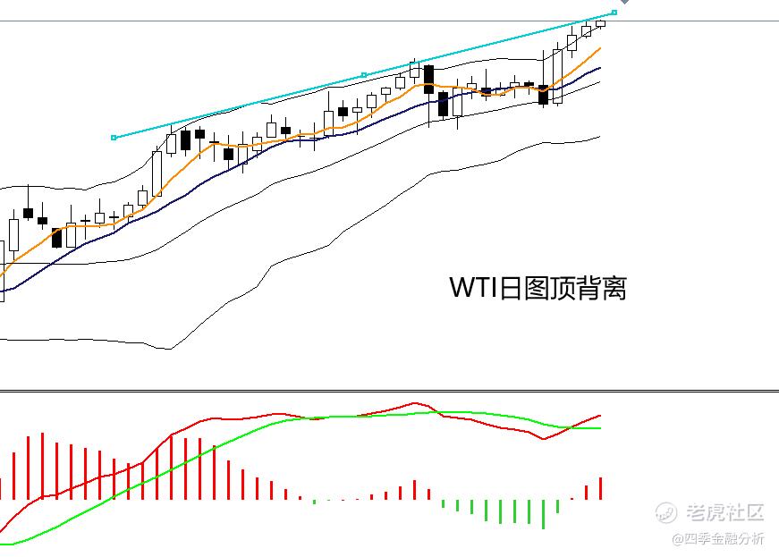 今天我还看空,原因嘛,那就是日线图的顶背离喽,其实最近基本面真的很照顾原油了,一系列利多,每次原油突破新高,想要跌,都被利多情绪阻止了,今晚的非农数据公布,按照我的推测,利多原油,但是啊,小非农公布后,经过这几天市场的消化,这个消息对于原油来说影响不大了,我现在就等着原油下来。