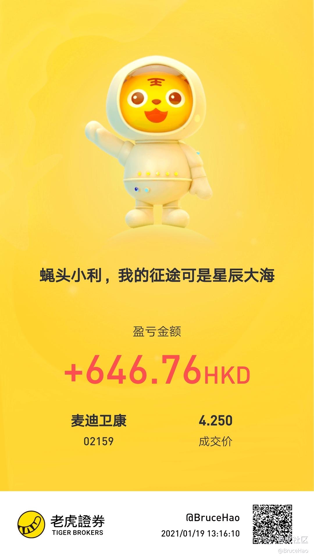 入场港股的第一笔小利,2021加油!