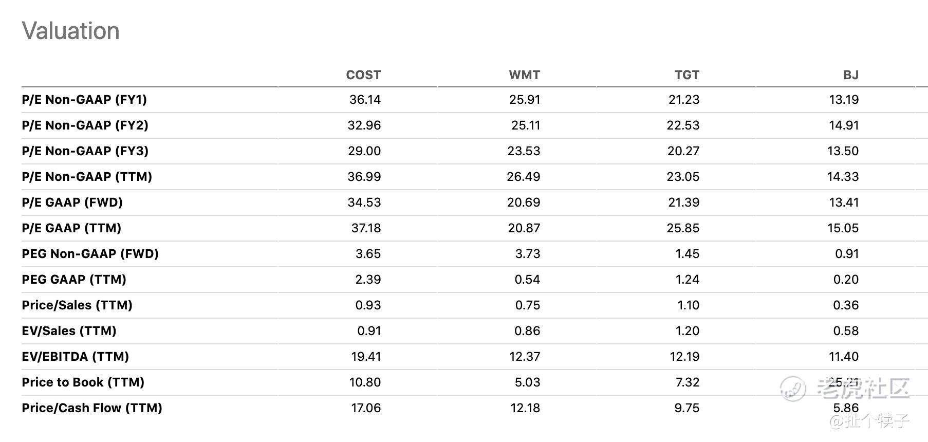 如果实在要挑毛病的话,好市多唯一的问题就是公司的估值相比同行业处在一个较高的水平。同行业的沃尔玛PE是20,Target是25,而好市多是37。