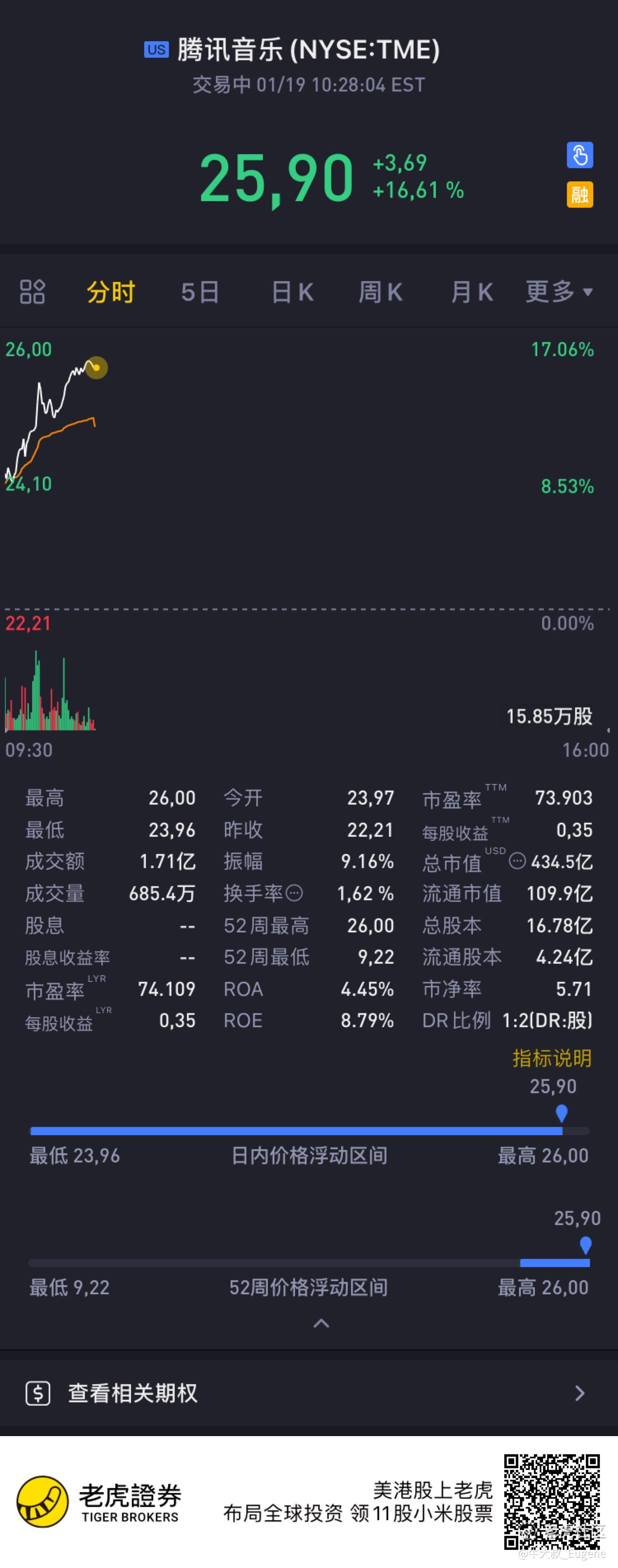 因为你是韭菜,老铁每股净资产20至26,低估哈,而且还盈利的,光看基本面,商业模式,估值,管理层,背靠腾讯,最近音乐行业竞争格局发展变化。不是二分天下,就是赢家通吃哈,你还卖掉,长期持有才是真,最少值50至60元。