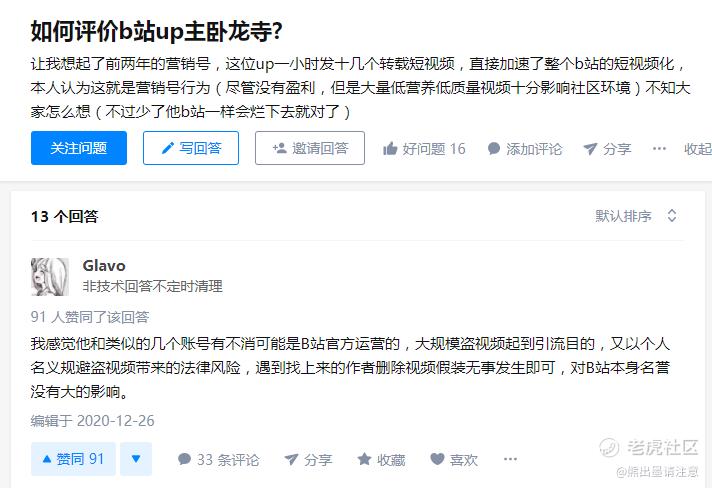 知乎上提出“如何评价B站UP主卧龙寺”问题的网友表明担忧,“这位UP一小时发十几个转载短视频,直接加速了整个B站的短视频化。”