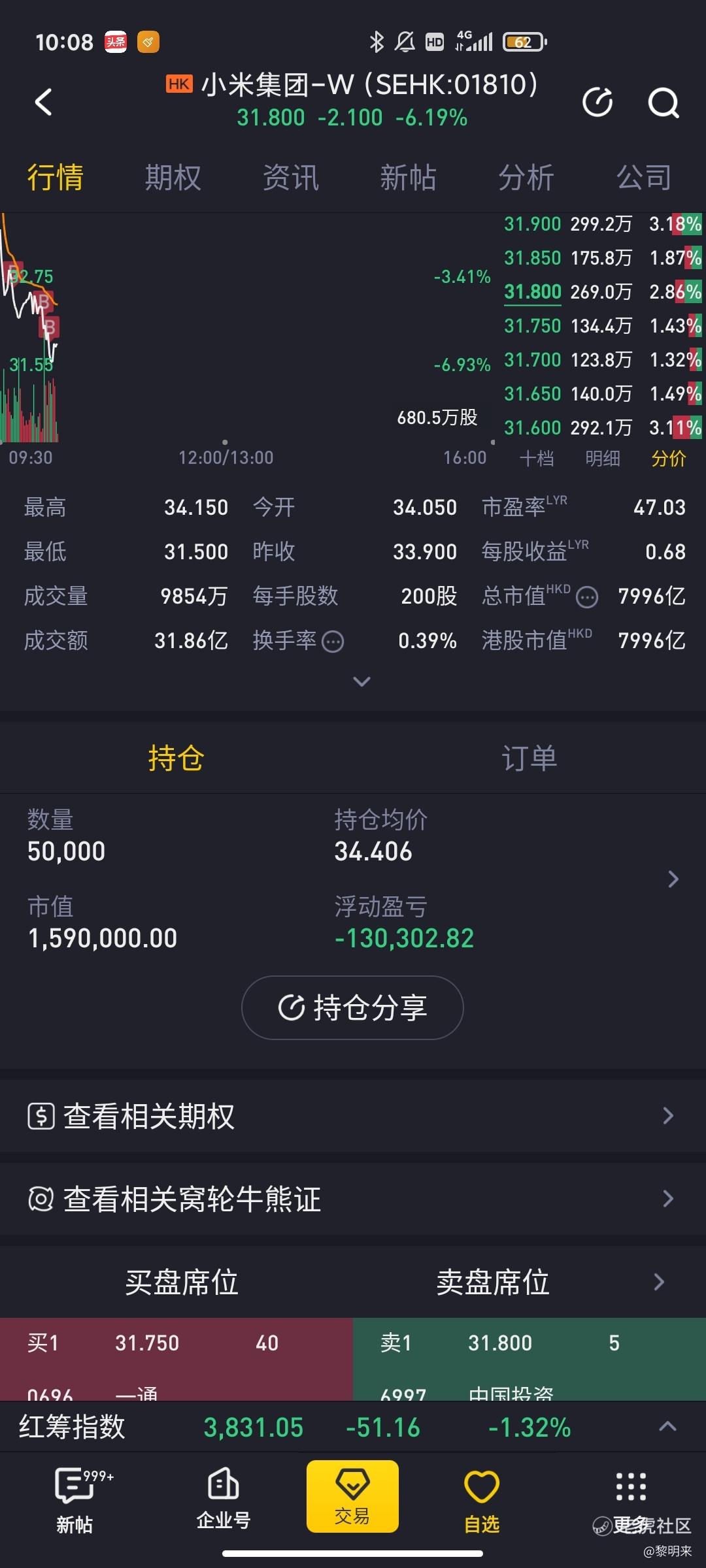 虽然抄底到山腰上,但不要慌,价值投资不在乎一朝一夕,依然看好小米今年到50。