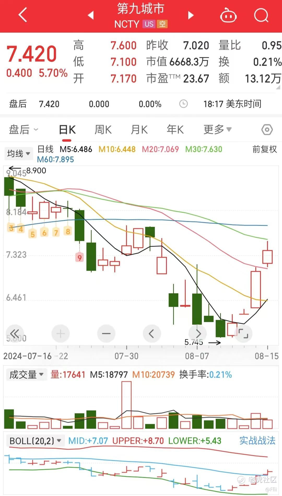 $第九城市(NCTY)$ 第九城市昨晚继续上涨,很多人不相信,还是用结果说话,技术上看第九城还能向上,而且量能暂时没有衰减的迹象,7.420这个价位还不高 整体看A股和美股的游戏与AI的上涨依然在延续,传奇M是一款AI网游,话题、热度、技术在现阶段做到了三重叠加,继续可以看涨。