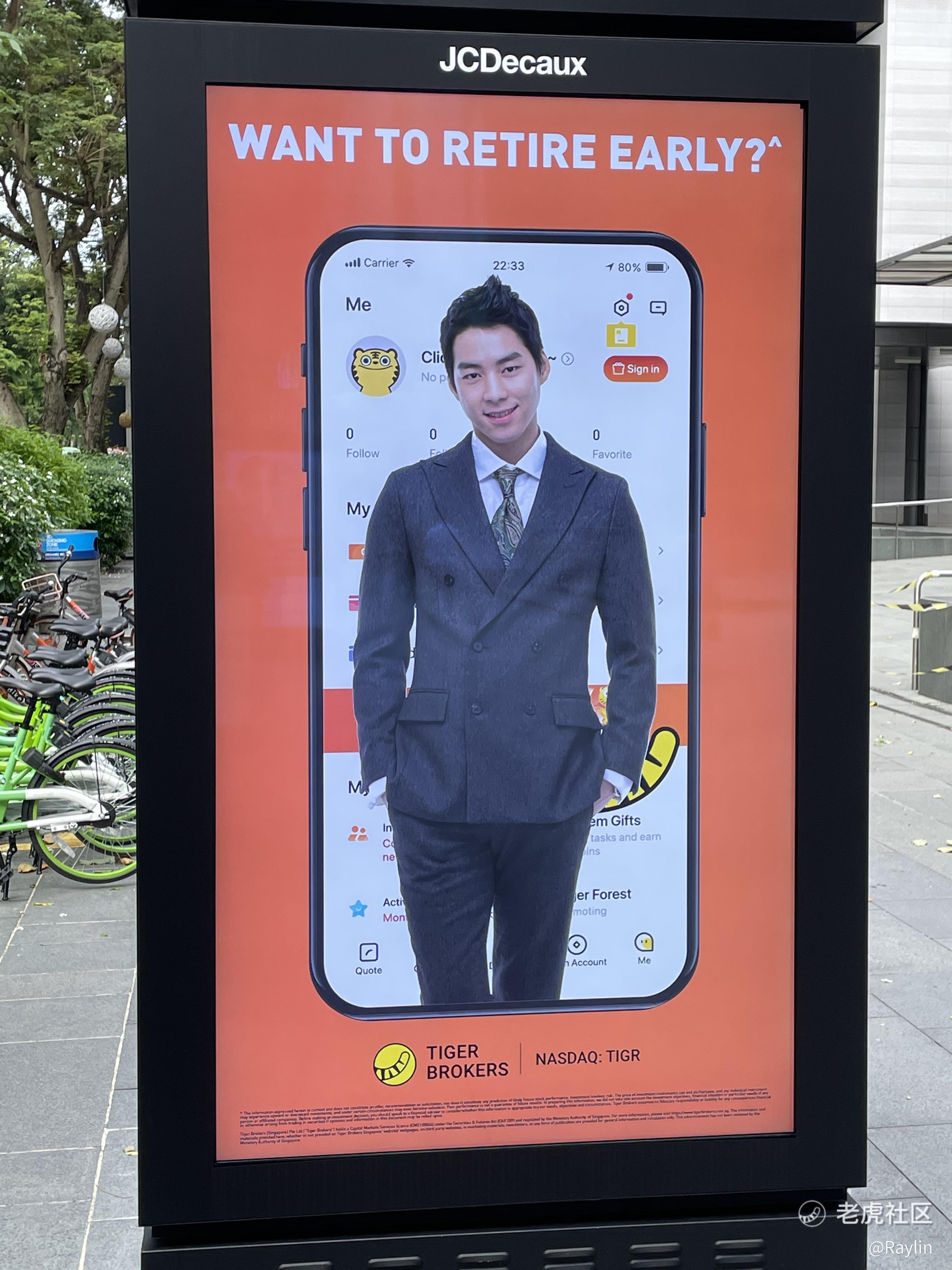 今天在新加坡乌节路看到的广告,老虎在新加坡慢慢做起来了,目前新加坡投资者和评测网站的评价也相当好,牌照也拿到了美国的以及新加坡MAS的,看起来要起势