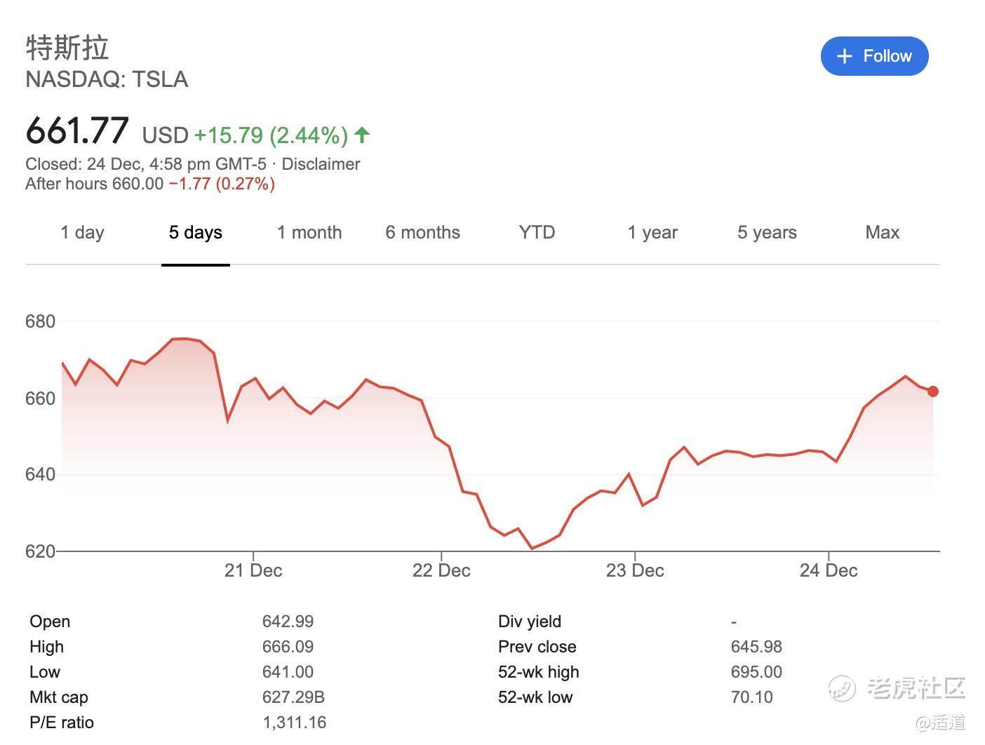果不其然,周末传出苹果造车的消息,周一特斯拉的股价就从上周五的历史最高点695美元跌落至649美元,跌幅高达6.6%。
