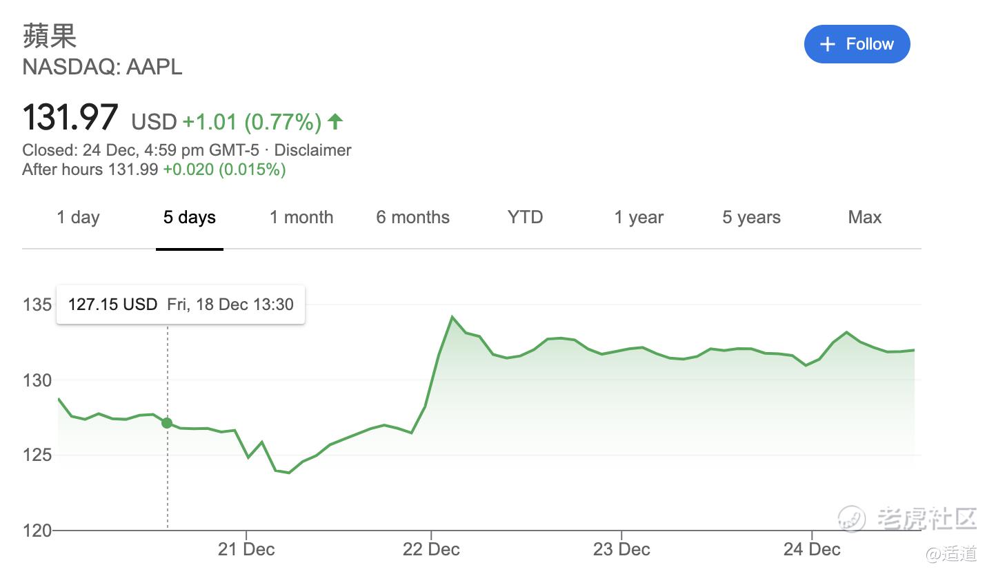 我的第二反应呢,自然是打开我的美股界面查看苹果的股票走势啦!