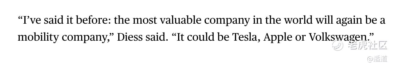 世界上最有价值公司的桂冠,将再一次落到一家汽车公司的头上。这家公司可能是特斯拉,可能是苹果,当然也可能是大众。”