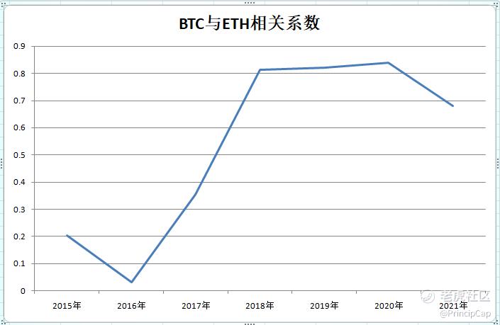 我们对每一年比特币和以太坊的价格分别进行相关系数的计算,然后得出了以下的表格。