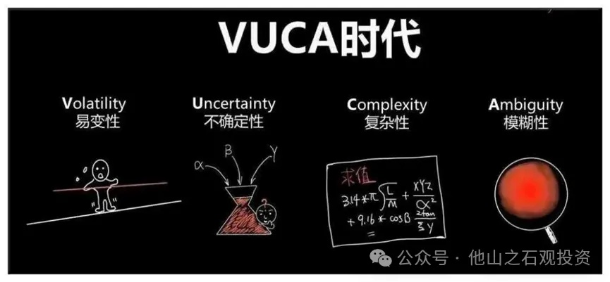 同样,资本市场的复杂性,也非常适合用VUCA这个概念来描述。市场存在大量的波动性、不确定性、复杂性和模糊性。