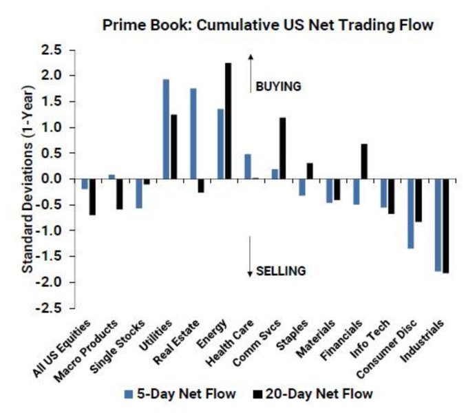 高盛指出:上周对冲基金买入了公用事业、房地产和能源类股票,并卖出了工业、非必需消费品、科技、金融和材料类股票。