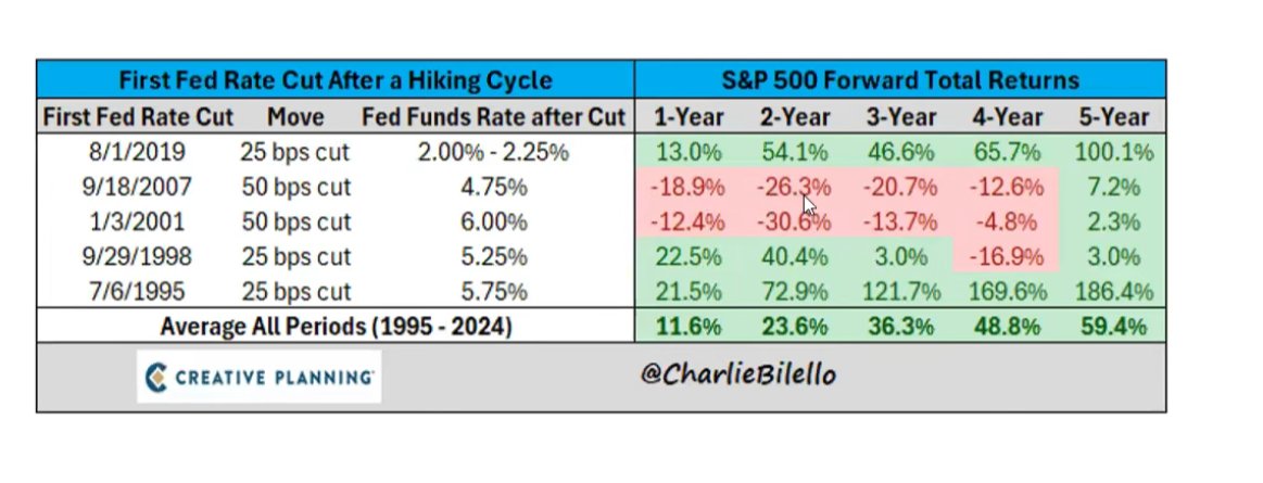 ✅ 当他们降息 25 个基点时,未来 1 年回报率平均值为 +11%。